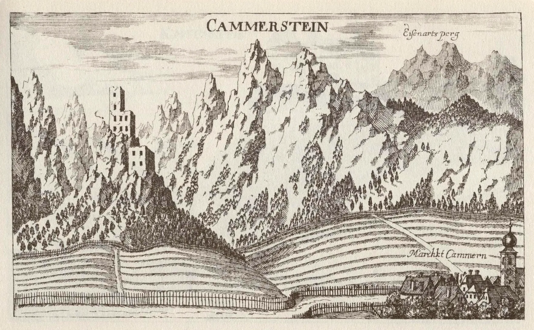 Die Burg Kammerstein wird hier nicht unbedingt realistisch dargestellt. Im Hintergrund ist wohl die Burg Ehrenfels angedeutet.