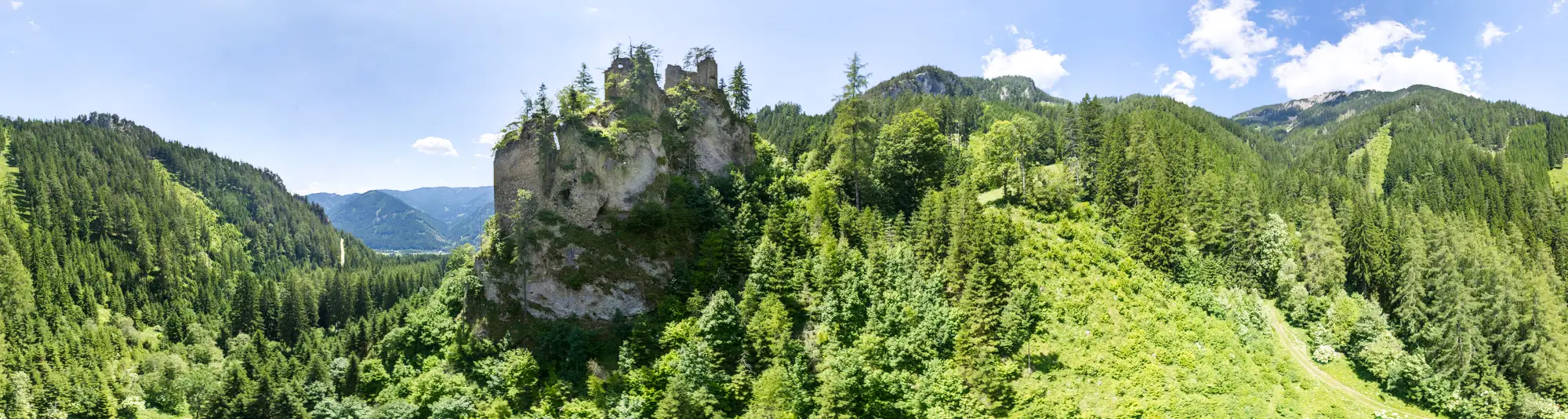Virtuelle 360°-Panorama-Tour zur und durch die Burg-Ruine Kammerstein im Liesingtal in der Steiermark. Geeignet für PC, Tablet und VR-Brille (z.B. Quest 3). Der Zugang zur Anlage erfordert Trittsicherheit – und so ist die VR-Tour eine alternative Möglichkeit für einen Besuch. Es gibt keinerlei Hinweise auf einen Erhalt und die Anlage vefällt seit über 500 Jahren.